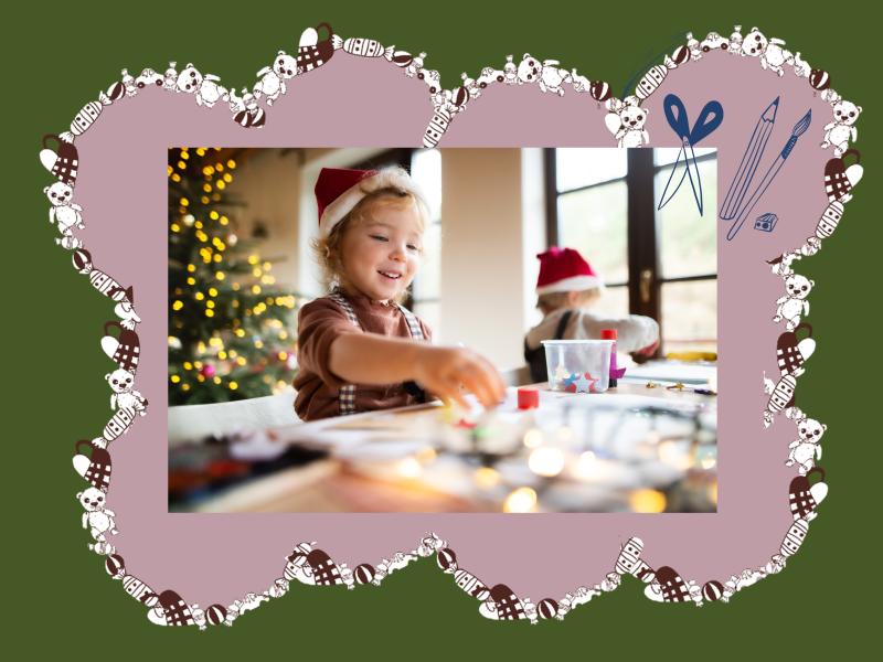 Vi klipper og klistrer julekort og pynt, og der er højtlæsning af en hyggelig julehistorie kl. 15.05, kl.15.25 og igen kl. 15.45.